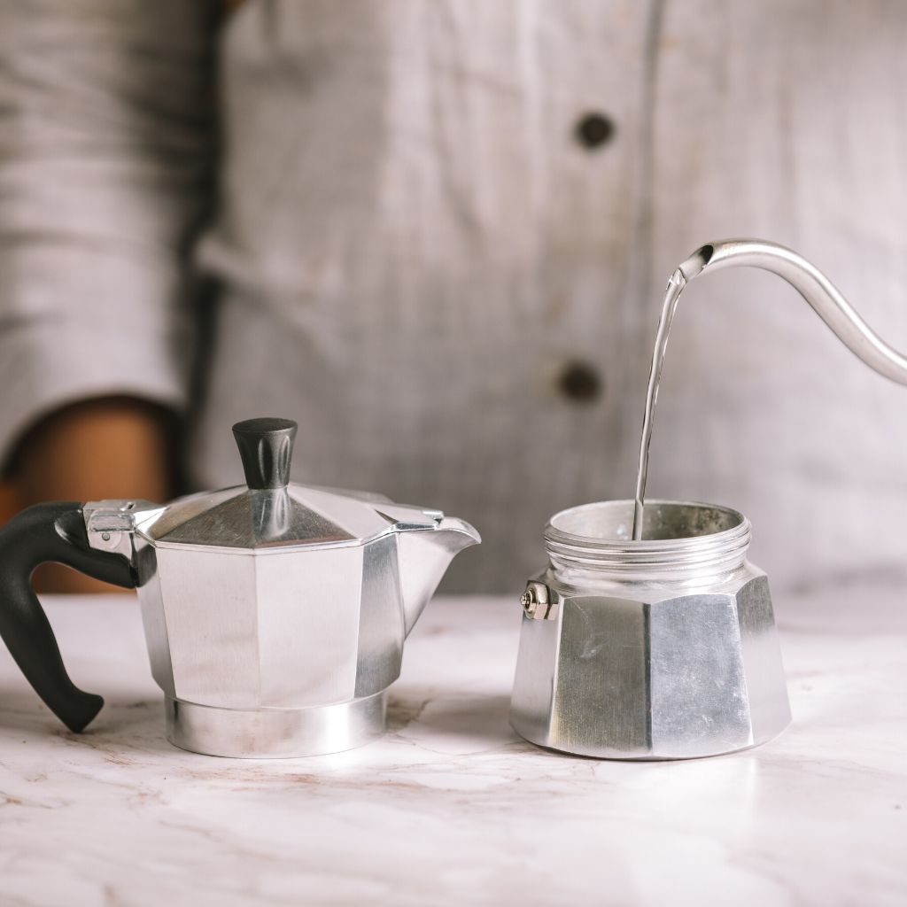 Fill the bottom half of your Moka Pot with hot water that's fresh off the boil.